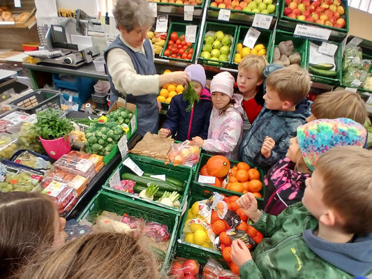 Zum Thema Obst und Gemüse wie auch gesunder Ernährung besuchten die zweiten Klassen den Obst- und Gemüseladen von Wendl von Frau Retsch in Laaber.