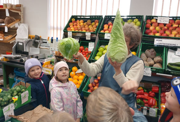 Dabei zeigten die Kinder ihr großes Vorwissen und ihre Vorerfahrungen, die sie bereits im Gemüse- oder Obstgarten gesammelt hatten und erkannten die meisten Obst- und Gemüsesorten richtig. Frau